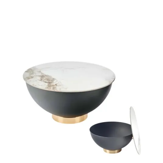 Masuta de cafea Cecilia de la Halmar este o combinatie unica de design modern cu o nota de glamour. Aceasta piesa de mobilier exclusivista incanta atat prin forma sa, cat si prin materialele din care este executata, fiind o adaugare eleganta in orice interior.Masuta dispune de un spatiu de depozitare ascuns, fiind o solutie functionala pentru camera de zi sau lounge, in plus fata de caracterul sau elegant.Baza masutei este realizata din otel durabil, care a fost acoperit cu pulbere intr-o culoare cenusie eleganta.Inelul de culoare aurie care incadreaza baza ii adauga masutei un farmec neobisnuit si un finisaj luxos.Partea superioara a masutei Cecilia este realizata din ceramica ce imita marmura alba.Aceasta suprafata eleganta si durabila ii confera masutei un caracter unic, creand impresia unui material luxos care este, de asemenea, usor de intretinut si rezistent la deteriorari.Stilul masutei poate fi descris ca fiind fermecator. Combinatia de otel acoperit cu pulbere, aspectul de marmura si finisajul auriu se potriveste perfect atat in interioarele moderne, cat si in cele mai elegante.Masuta se va potrivi perfect intr-un set cu celalalt model similar, Cecilia-s, cu diametrul de 48 cm.Masuta de cafea este acoperita de o garantie a producatorului de 2 ani in sistem Door-to-Door pentru confortul tau deplin.Iti livram masuta GRATUIT oriunde in tara.IMPORTANT: Daca piesa de mobilier nu corespunde asteptarilor tale, in conformitate cu legislatia in vigoare, ai dreptul sa o returnezi in termen de 14 zile de la cumparare.Dimensiuni:- 73 cm latime,- 37 cm inaltime,- 73 cm adancime.