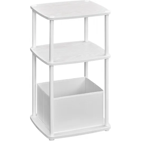 Cu 3 rafturi si un cos din material textil inclus, aceasta masuta ofera un spatiu de depozitare generos, ideal pentru a pastra la indemana diverse obiecte. Fie ca doriti sa asezati vaze, lampi, carti sau alte accesorii, aceasta masuta este solutia perfecta pentru a organiza si a adauga un strop de ordine in incapere.