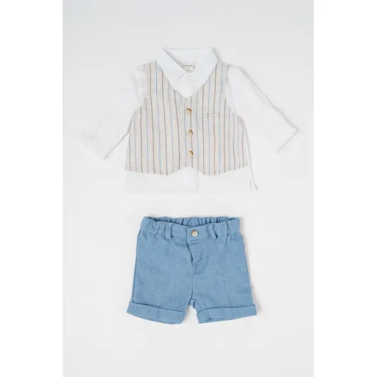 Mayoral, Set de pantaloni si camasa din amestec de bumbac - 2 perechi, Alb optic, Albastru deschis, 65 CM
