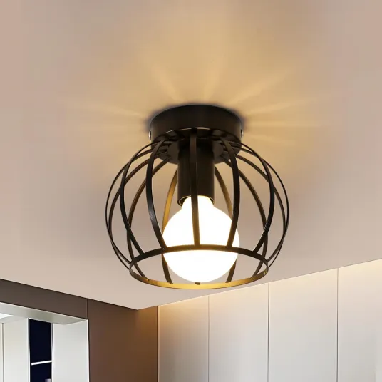 Mckalen, Plafoniera, E27 Industrial Retro, Semi-incastrata, Metal Rust Black, pentru hol, scari, garaj, living, bucatarie, dormitor