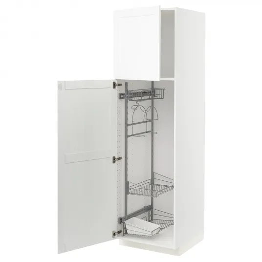 IKEA METOD Corp inalt + Accesoriu Curatenie Alb EnkOpingalb Aspect Lemn 60x60x200 cm este proiectat cu o estetica eleganta si moderna, care completeaza atat interioarele contemporane, cat si cele traditionale. Culoarea alba cu finisaj asemanator lemnului adauga un element de caldura si rafinament casei tale. Cu dimensiunile sale compacte de 60x60x200 cm, se poate potrivi perfect in orice camera, fie ca este vorba de un dormitor, sufragerie sau chiar un birou de acasa.