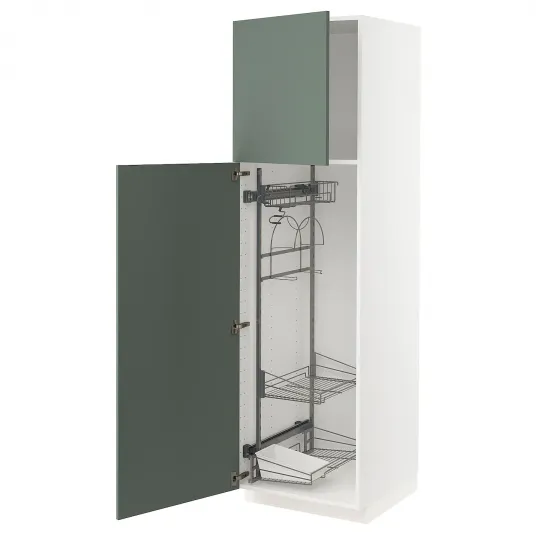 IKEA METOD Corp inalt + accesoriu curatenie, alb/Bodarp gri-verde, 60x60x200 cm