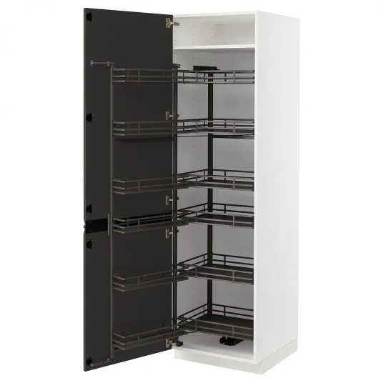 Conform statisticilor din industrie, sistemele de depozitare bine organizate pot creste eficienta in bucatarie cu pana la 40%. METOD Corp inalt cu coloana culisanta albUpplOv mat antracit 60x60x200 cm ofera o solutie care nu numai ca imbunatateste functionalitatea spatiului dumneavoastra, dar adauga si o nota de stil.