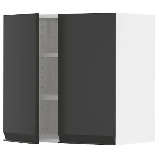 METOD Corp suspendat + polite 2 usi alb UpplOv mat antracit 60x60 cm ofera nu doar functionalitate, ci si o nota eleganta spatiului tau de locuit. Cu designul sau elegant si modern, se imbina fara efort cu orice decor interior. Indiferent daca aveti un stil traditional sau contemporan, aceasta solutie de depozitare completeaza estetica casei dvs.