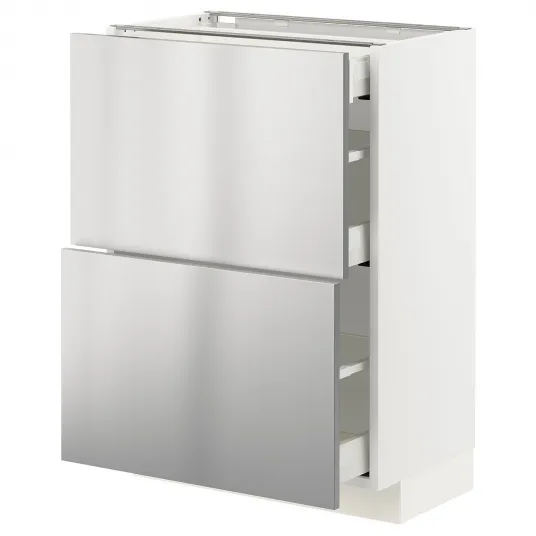 IKEA METOD / MAXIMERA Corp baza 2fronturi/3sertare, alb/Vårsta inox, 60x37 cm