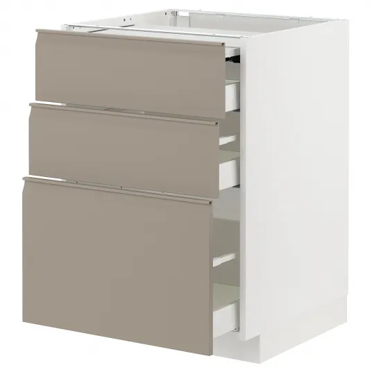 IKEA METOD / MAXIMERA Corp baza+blat culisant/3 sertare, alb/Upplöv mat bej deschis, 60x60 cm