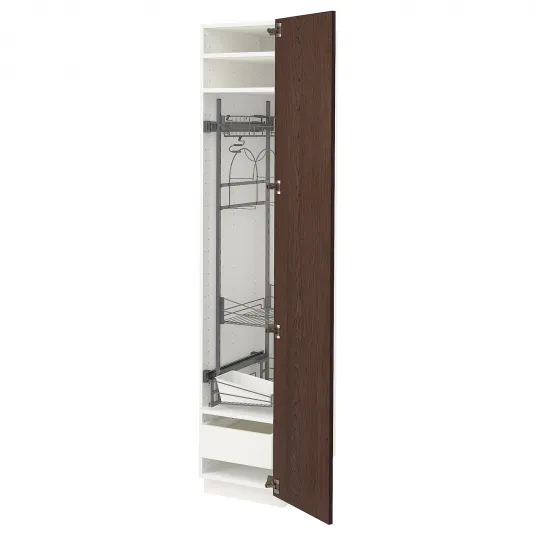 IKEA METOD / MAXIMERA Corp inalt + accesoriu curatenie, alb/Sinarp maro, 40x60x200 cm