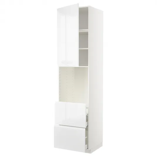 IKEA METOD / MAXIMERA Corp inalt cuptor+usa/2 sertare, alb/Voxtorp lucios/alb, 60x60x240 cm
