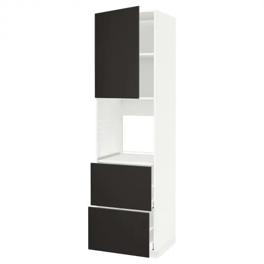 METOD MAXIMERA Corp inalt cuptor+usa2front2sert alb Kungsbacka antracit 60x60x220 cm este proiectat cu solutii inteligente de depozitare pentru a raspunde tuturor nevoilor dumneavoastra de organizare a bucatariei. Dulapul are doua sertare spatioase cu sertare MAXIMERA care asigura o inchidere lina si silentioasa, precum si acces usor la oale, tigai si alte articole esentiale de bucatarie.