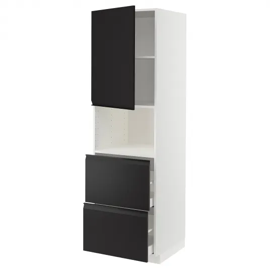 IKEA METOD / MAXIMERA Corp inalt microunde+usa/2 sertare, alb/Upplöv mat antracit, 60x60x200 cm