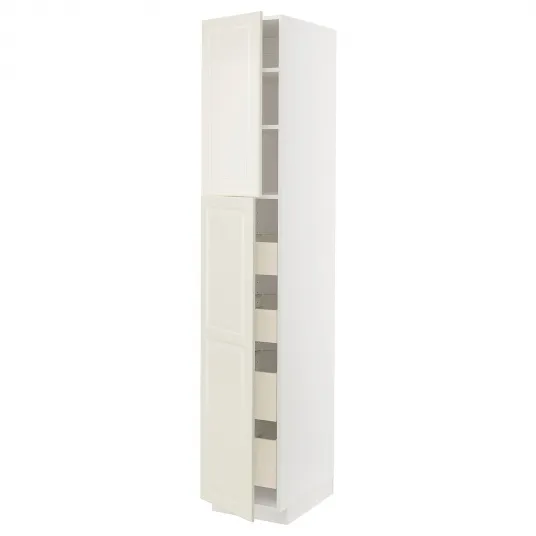IKEA METOD / MAXIMERA Corp inalt+2 usi/4 sertare, alb/Bodbyn alb murdar, 40x60x220 cm