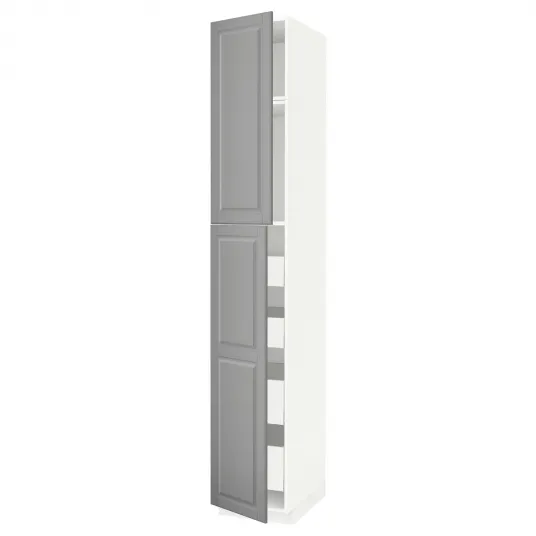 IKEA METOD / MAXIMERA Corp inalt+2 usi/4 sertare, alb/Bodbyn gri, 40x60x240 cm