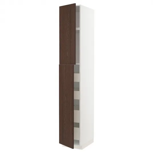 IKEA METOD / MAXIMERA Corp inalt+2 usi/4 sertare, alb/Sinarp maro, 40x60x240 cm
