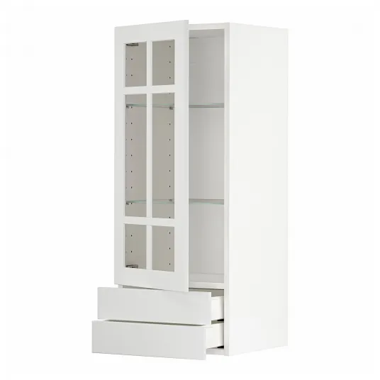 - Denumire produs: Corp de bucătărie suspendat IKEA METOD / MAXIMERA cu ușa din sticlă și două sertare, culoare alb/Stensund alb