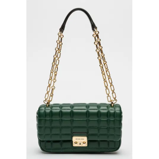 Michael Kors, Geanta din piele cu bareta de umar din lant Tribeca, Verde inchis