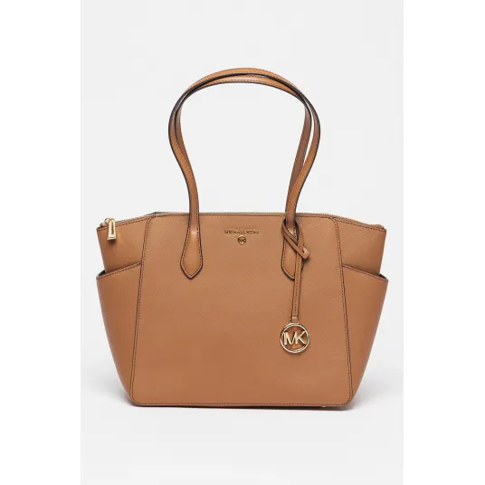 Michael Kors, Geanta tote de piele Saffiano cu accesoriu logo Marilyn, Caramel