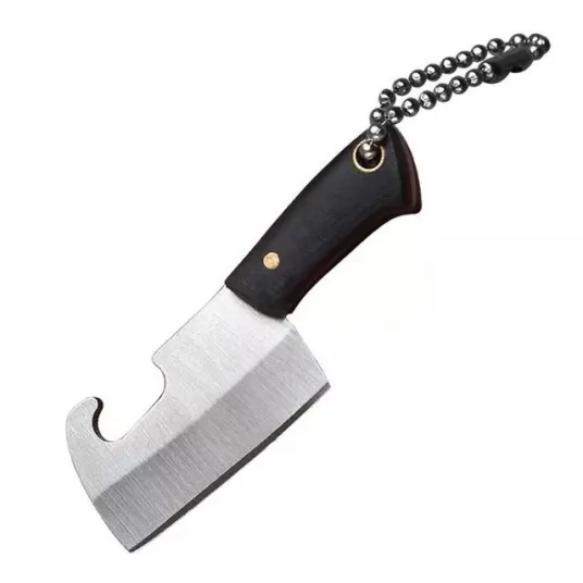 Mini-Satar Breloc, Otel Inoxidabil, Forjat Manual, Maner Lemn negru, Husa din piele ecologica inclusa