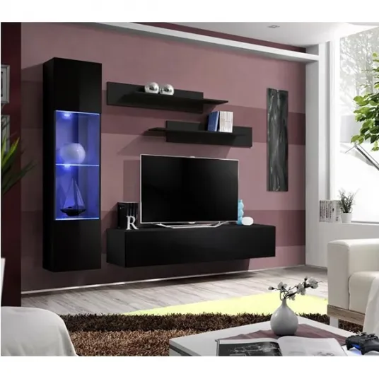 Mobila living Fly 23 ZZ FY G3, negru-negru lucios, 210 x 40 x 190 cm