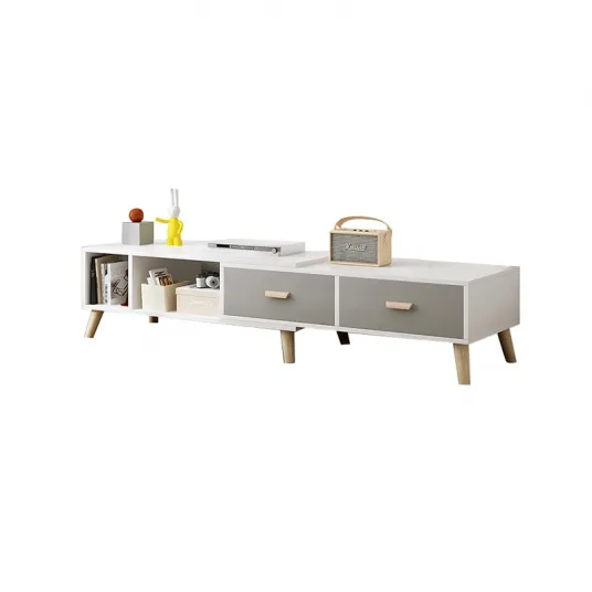 Mobilier living, Comoda TV, masuta de cafea, 2 sertare, lungime reglabila, picioare din lemn masiv, (120-198)Г—30Г—40cm, alb + griMobilier living, Comoda TV, masuta de cafea, 2 sertare, lungime reglabila, picioare din lemn masiv, (120-198)Г—30Г—40cm, alb + gri223324327223324327