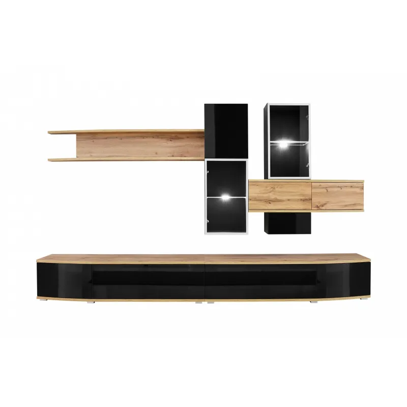 Mobilier Living-sufragerie camera de zi , carcasa negru mat -stejar artisan usi mdf-pvc negru lucios , 300 cm lungime, usi deschidere push open, vitrina iluminata led - Bortis ImpexLiving , camera de zi , moderna, fabricata din pal si mdf pvc . Finisaje de calitate . In imagini vedeti dimensiunile exacte . Usi cu deschidere push open , vitrina iluminata. Ramele de la vitrina din aluminiu . Prindere si de perete . Atentie ! Decoratiunile din imagini nu sunt incluse in pret , sunt doar pentru decor ! Se livreaza neasamblat, in colete . Coletele contin tot ce este necesar pentru asamblare (schita, accesorii , feronerie. )222858551222858551