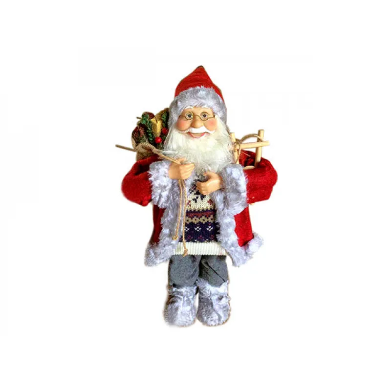 - Materiale autentice: Blana rosie si gri de pe aceasta figurina de Mos Craciun este realizata din materiale naturale, de inalta calitate, oferindu-i un aspect luxos si realist.