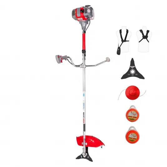Motocoasa de tuns gazon/iarba pe benzina Ruris Elan 319S, putere 1.2 CP, 33 CC, 2 timpi, latime lucru 250 mm, contine: disc 3 dinti + autocut profesional cu fir + fir 2.4 mm patrat/rotund + ham