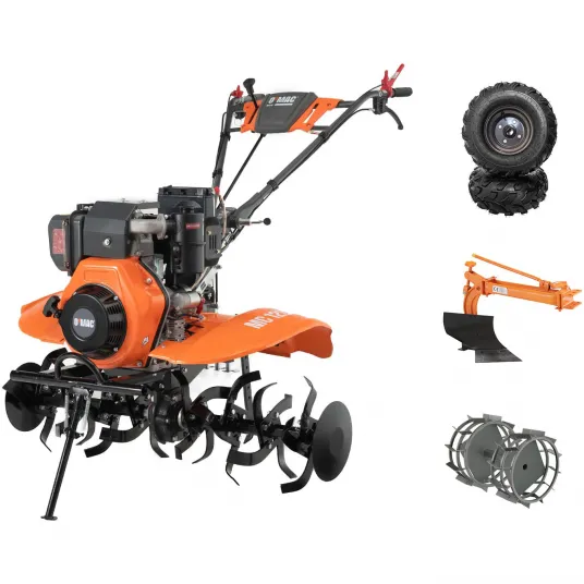 Continut pachet1 x Motocultor MC 120E-D,2 x Roti cauciuc 5x12,1 x Plug reglabil motocultor,2 x Roti metal cu manicot D.440 / Ø 32,2 x Freza motocultor (1 stg + 1 dr)