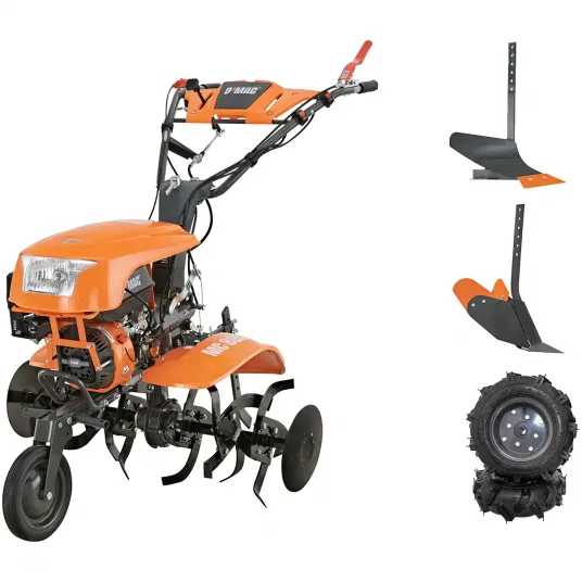 Motocultor O-Mac MC 800, 7 CP, 212 CC, 3 viteze,priza de putere, 90 cm latime maxima, 35 cm adancime maxima, 3.6 l benzina, freze, roti, plug, rarita