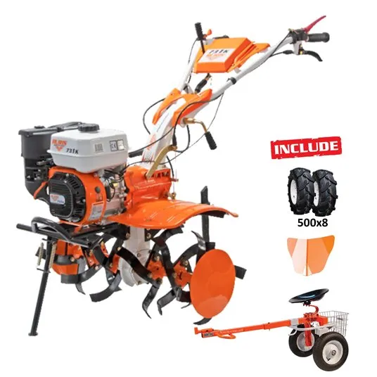 Motosapatoarea profesionala RURIS 731ACC, dotata cu motor General Engine de 7,5 CP, este destinata lucrarilor agricole din gradini si culturi de camp. Acest model poate fi utilizat pentru a lucra toate tipurile de sol datorita robustetii materialului din care este confectionata carcasa (fonta nodulara). Motosapatoarea poate fi manevrata cu usurinta gratie schimbatorul de viteze cu actionare Easy Control, care dispune de un sistem de parghii ce ajuta utilizatorul sa faca schimbul de viteze usor, fara a mai indexa mecanic pinioanele din cutia de viteze. RURIS 731ACC are si o cutie de scule, care permite utilizatorului sa depoziteze accesoriile in timpul deplasarii.