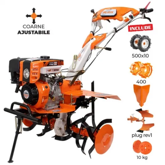 Motosapatoare RURIS 751KS + roti cauciuc 5.00-10+rarita+plug reversibil rev1+roti metalice 400 fara manicot+set contragreutati 20kg
