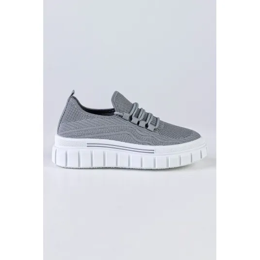 MUSK, Pantofi sport slip-on cu talpa wedge, Gri deschis, Alb optic, 38