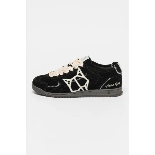 NAKED WOLFE, Pantofi sport din piele intoarsa cu logo Exposure, Negru, 39NAKED WOLFE, Pantofi sport din piele intoarsa cu logo Exposure, Negru, 39223705362223705362