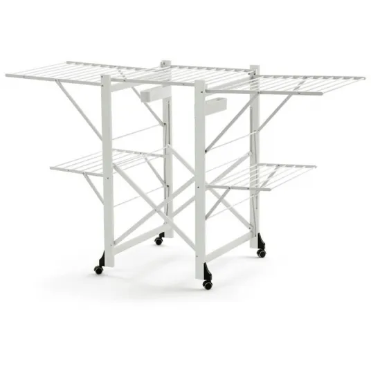 Напольная сушилка для белья Gabbiano от Arredamenti – компактное решение проблемы сушки большого количества мокрого белья в небольшом пространстве. Сушилка для белья Gabbiano от итальянской компании Arredamenti, пожалуй, самый вместительный предмет интерьера в своём классе. Сушилка для белья Gabbiano, раскладная: Каркас – массив дерева. Независимые нейлоновые решетки. Алюминиевые перекладины. Контейнеры для прищепок. Колеса с функцией анти-след. Общая длина поверхности – 175 cм. В сложенном состоянии занимает очень мало места, глубина 12 см. Несколько положений сложения. Дополнительно может крепиться элемент для сушки простыней. Важно: Крыло для сушилок Pelikano – дополнительный элемент и в комплектацию сушилки не входит! Основание и каркас сушилки изготовлены из натурального массива бука, а перекладины – из лёгкого алюминия. Для защиты от воздействия влаги, деревянные детали обработаны водоотталкивающим лаком. Струны, на которых располагается белье, выполнены из высококачественного металлопластика, покрытого специальным порошковым составом. Помимо нескольких ярусов решёток для сушки белья, она снабжена двумя небольшими ящиками для мелочей. Встроенные колёсики делают её очень мобильной, а складная конструкция позволяет сэкономить место в вашем доме. Особенно удобно то, что её не надо раскладывать полностью, если вам не нужна вся её поверхность. Состоит сушилка из двух каркасов, соединенных между собой, и 5 складных платформ-крыльев. Одно крыло крепится по центру, остальные 4 складываются и раскладываются независимо друг от друга, что дает возможность легкой регулировки длины полезной площади. Приятным бонусом станут дополнительные контейнеры для прищепок, поставляющиеся в комплекте с моделью. Небольшие размеры (105 х 67 х 175 см) и устойчивые колесики делают сушилку компактной, мобильной и удобной в эксплуатации. За счет соблюдения всех стандартов качества механизм сушилки легко складывается и раскладывается. Напольная сушилка для белья Арридаменти Габбиано выпускается в 4 цветовых вариантах – вишня, венге (черный) и белый лак.