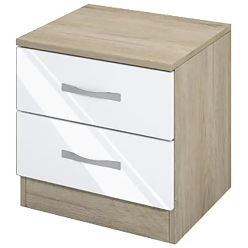 Noptiera Irim Cleo, 40x35,5x41 cm, 2 sertare, Culoare Sonoma Arwen, Alb Gloss