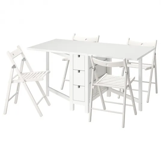 • Nume produs: IKEA NORDEN / TERJE Masa + 4 scaune pliant alb/alb