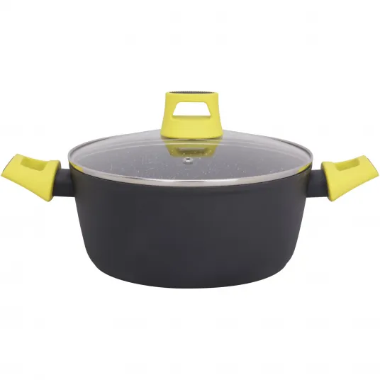 Oala aluminiu cu capac Amercook Stanenova, 24 cm, 3.7 L, inductie, negru / galben