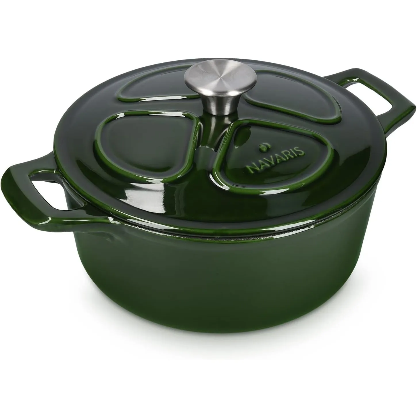 Oala fonta emailata Navaris, verde inchis, cu capac, pentru cuptor, plita, gaz, electric, cu inductie, cu infrarosu, 20 cm, 2.5 l