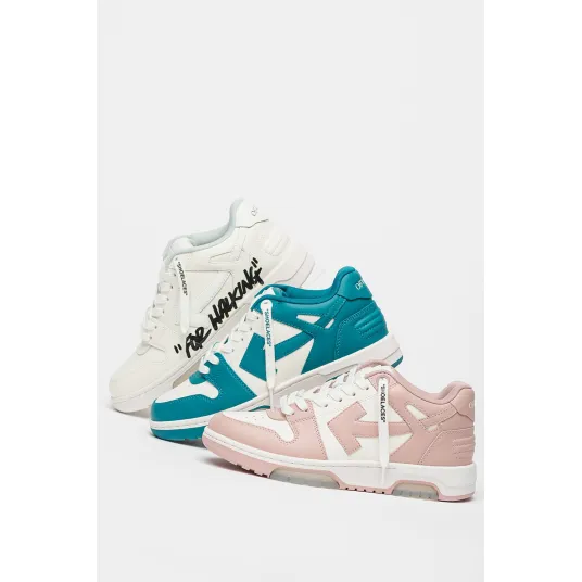 OFF-WHITE, Pantofi sport din piele cu insertii din material textil, Alb, Roz deschis, 39OFF-WHITE, Pantofi sport din piele cu insertii din material textil, Alb, Roz deschis, 39223709624223709624