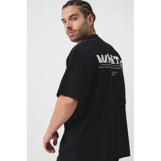OFF-WHITE, Tricou cu decolteu la baza gatului si imprimeu logo, Negru, LOFF-WHITE, Tricou cu decolteu la baza gatului si imprimeu logo, Negru, L223839511223839511