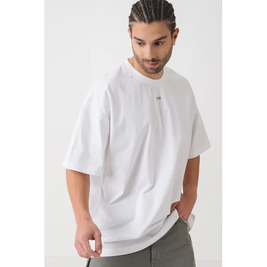 OFF-WHITE, Tricou cu decolteu la baza gatului si maneci cazute, Alb, LOFF-WHITE, Tricou cu decolteu la baza gatului si maneci cazute, Alb, L223839530223839530
