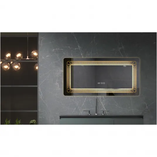 Oglinda baie Belform Atlantis, cu iluminare LED 3 culori, intrerupator touch, ceas, functie dezaburire, 120x60 cm