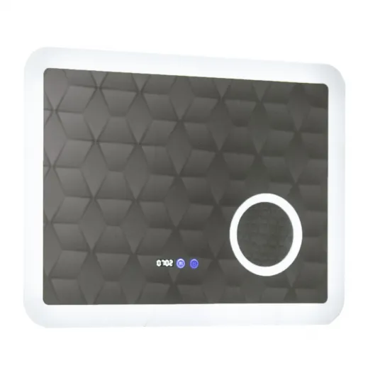 Oglinda baie cu iluminare LED Badenmob 18500, functie dezaburire, ceas, termometru si lupa, 80x60cm
