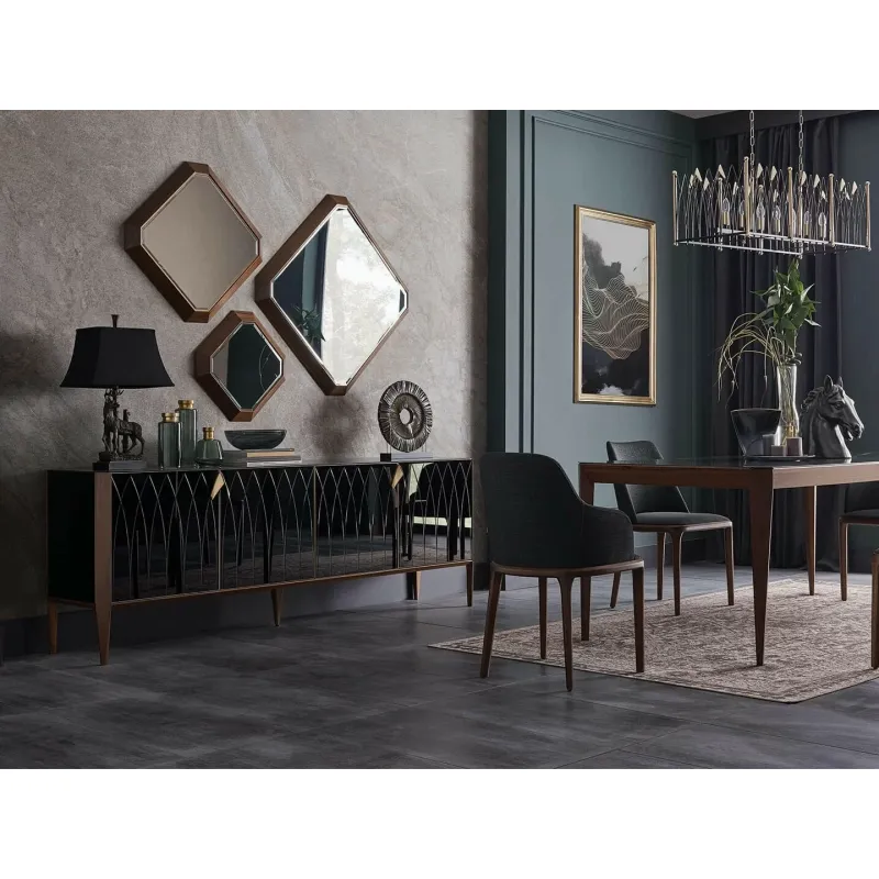 Dimensiuni: Adancime: 44,5 cm Inaltime totala: 44,5 cm Articol: 3200376485. Colectia: Logan Culoare: Nuc / Auriu Material: MDF / Pal / Sticla Farmecul atemporal al pieselor de mobilier in stil glam in combinatie cu cele mai recente tendinte in design definesc colectia Logan. Caracterul lor exceptional se evidentiaza prin eleganta si rafinamet, permitand aranjarea unui interior in care timpul petrecut va fi de neuitat. Oglinda decorativa Logan se integreaza perfect in livingul dumneavoastra si creeaza un puternic efect vizual. Detalii tehnice: Rama produsului este realizata din MDF si pal. Fabricat cu o atentie deosebita pentru un efect desavarsit. Articol: 3200376485, Colectie LOGAN