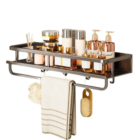 Organizator, Mindblower, de perete, cu suport prosop, 40 cm, din otel inoxidabil, rezistent la apa si rugina, usor de curatat, montaj flexibil, instalare prin gaurire sau sistem aderent pentru o fixare sigura si durabila