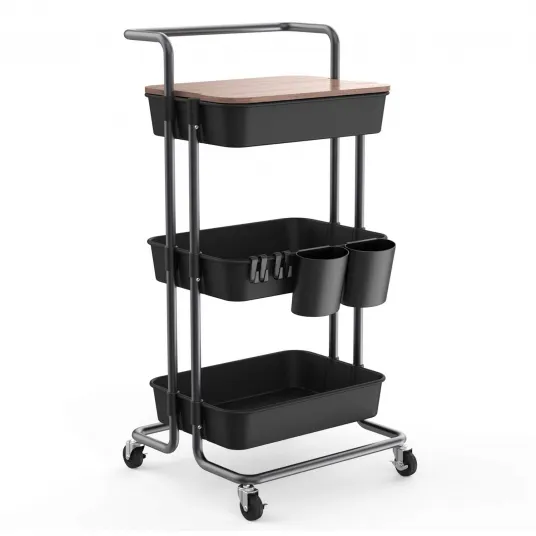 Organizator rulant cu 3 etaje pentru marfuri diverse cu accesorii, negru, OVERTANGOrganizator rulant cu 3 etaje pentru marfuri diverse cu accesorii, negru, OVERTANG701876215701876215