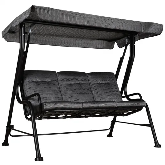 Outsunny Balansoar pentru Gradina pentru 3 Persoane cu Baldachin Reglabil si Perne Captusite, 200x120x170cm, Negru