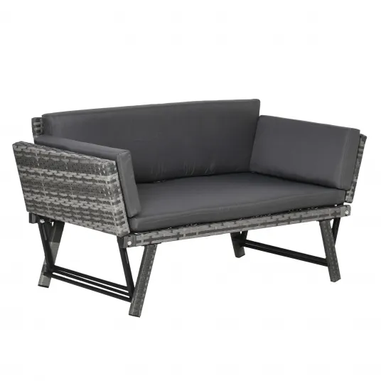 Aceasta canapea de gradina Outsunny cu cadru din otel ranforsat invelit in ratan este ideala pentru a face spatiul exterior mai frumos si mai confortabil. Cotierele laterale pot fi extinse pentru a crea mai mult spatiu pentru sedere sau somn. Sezutul si spatarul sunt capitonate, pentru a va oferi confort maxim in orice moment al zilei. Proiectata pentru a rezista la utilizare in exterior, canapeaua noastra este ideala pentru gradina, balcon, terasa etc.