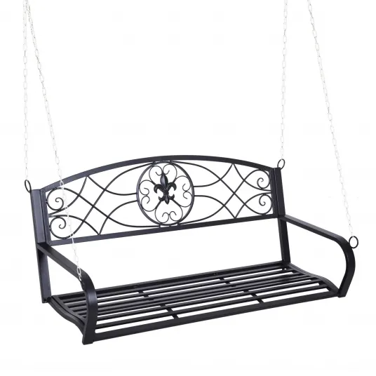 Outsunny Leagan de Extern Suspendat in Fier Forjat NegruCompleta il tuo set di arredi per esterno con questo fantastico dondolo di Outsunny. Caratterizzata da un semplice ma bellissimo design fleur-de-lis, questa panca combina uno stile elegante con il gusto minimalista. Il telaio è costruito in acciaio robusto e resistente alla ruggine per durare lungo periodo di tempo. Essendo comodo e funzionale, il sedile può contenere fino a 2 adulti per una capacità massima di peso di 200kg senza compromettere la sicurezza o la stabilità. Potresti personalizzare il look aggiungendo cuscini che riflettono la tua personalità e il tuo stile. Siediti e rilassati con questo splendido dondolo in metallo!222851071222851071
