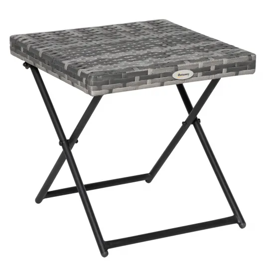 Outsunny Masuta pentru Gradina Pliabila din Ratan Sintetic si Otel, Masuta pentru Exterior Economie Spatiu 40x40x40cm, Gri