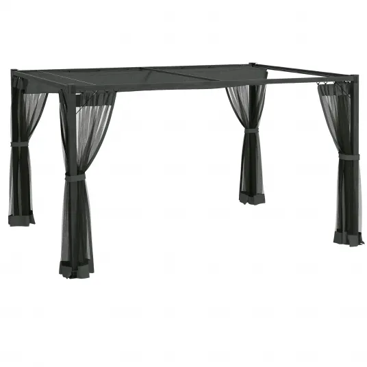 Outsunny Pergola 3 x 4 m cu acoperis copertina retractabila si pereti din plasa, Foisor de exterior cu cadru din aluminiu pentru gradina, Adapost de soare pentru gratar, terasa, veranda, Gri inchis